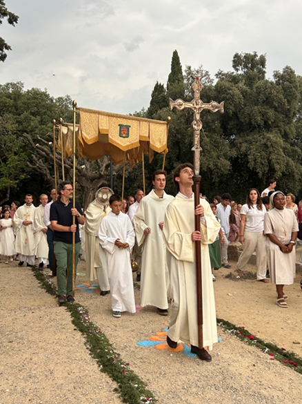 Es domingo. Un domingo más activo que lo habitual. La Plaza del Monasterio en Sant Cugat es un hervidero, también el patio de la institución religiosa y el propio interior rebosan. Este 22 de junio de 2025 los fieles celebran el Corpus Christi. Uno de los sacramentos centrales del cristianismo que recuerda el momento en que Jesús convirtió el agua en vino durante la Última Cena.