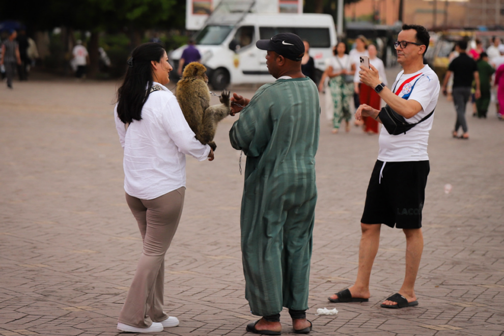 Por las calles también se ven burros y caballos arrastrando carretas llenas de turistas, bajo el sol y durante largas horas. En las plazas más concurridas, algunos hombres entrenan monos para que se tomen fotos con los visitantes. Detrás de estas escenas, hay largas jornadas de maltrato animal y explotación que suelen pasar desapercibidas.